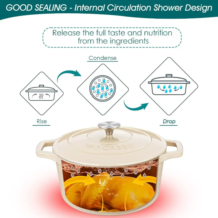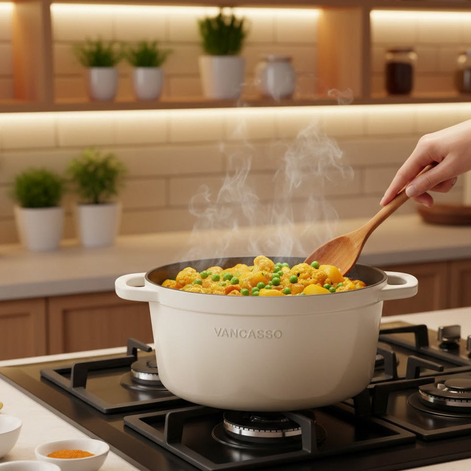 Cast iron heats slowly and evenly, which means fewer hot spots and better control for braising, simmering, and slow cooking.